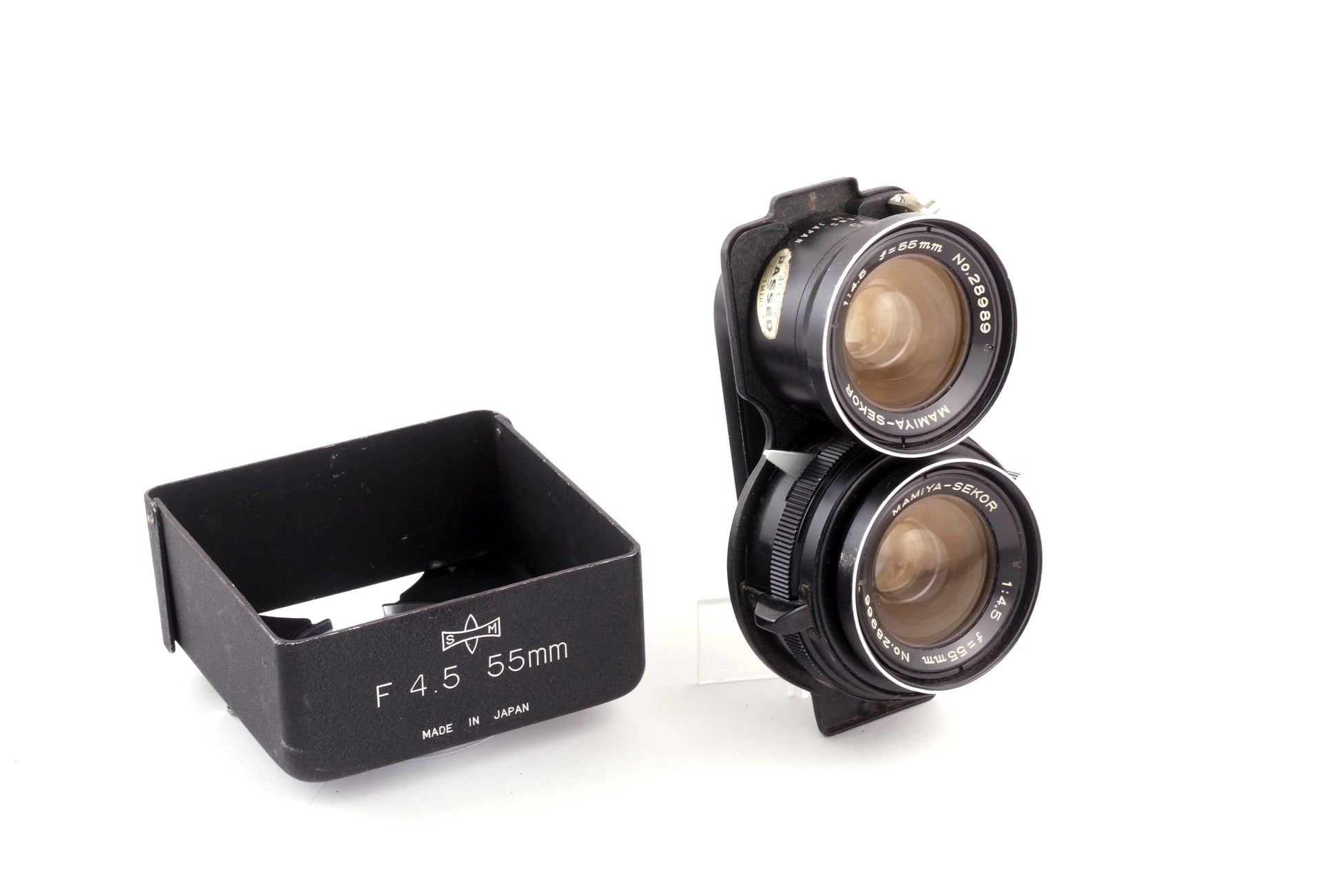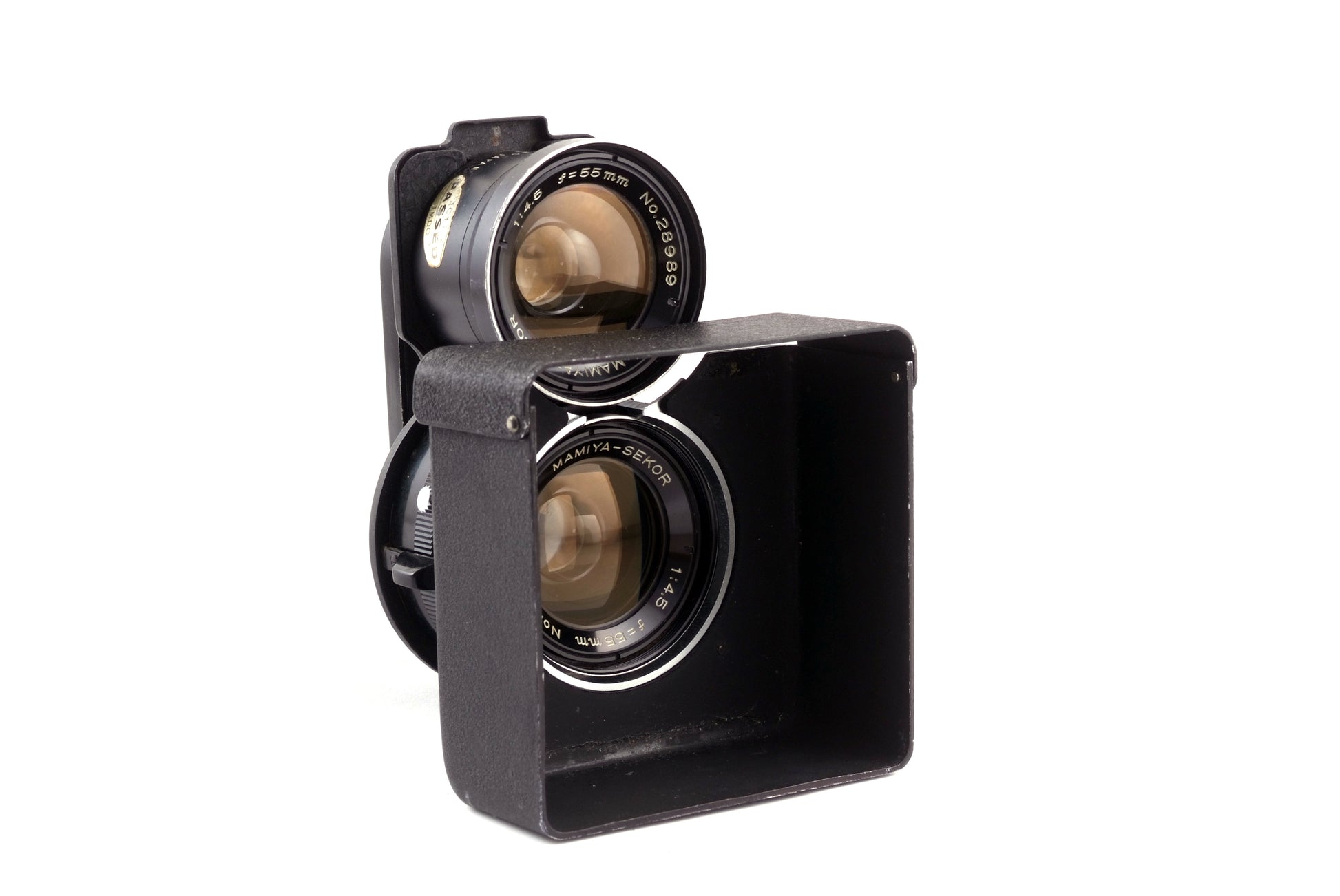 Mamiya 55mm f/4.5 groothoeklensset voor Mamiya C‑serie TLR-camera’s (C220, C330, etc.). Voor 6x6-formaat; beeldhoek vergelijkbaar met circa 32mm (kleinbeeld). Maximale opening f/4.5, diafragma tot ca. f/32. Ingebouwde centrale sluiter met B en 1 s–1/500 s, flitssynchronisatie op alle snelheden. Bestaat uit gekoppelde opname- en zoekerlens voor TLR-gebruik. Bajonetopname voor Mamiya TLR-filters en zonnekap. Ideaal voor landschappen, architectuur en interieurs waar een brede beeldhoek gewenst is.